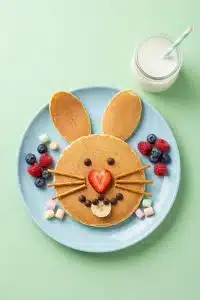 Pop a wicker basket holding a plush lamb on one end of the table for a sweet, nostalgic touch.