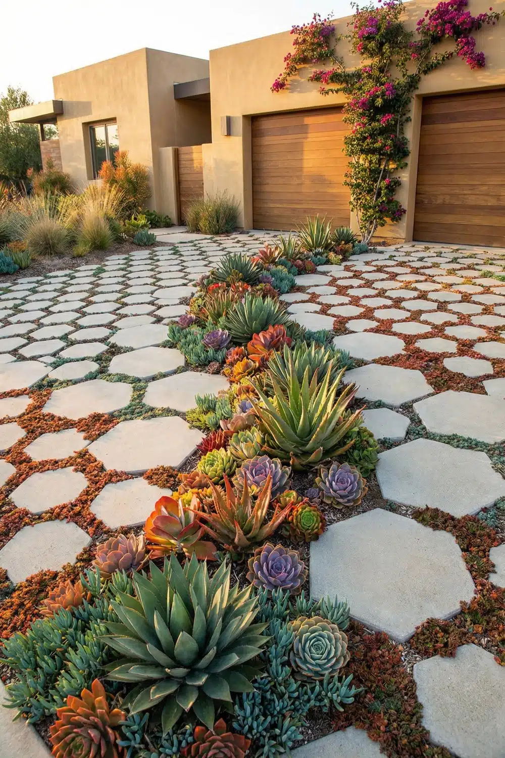 1. Geometric Hexagonal Pavers with Integrated Succulents🔥 Top Trend💥 Highest Impact